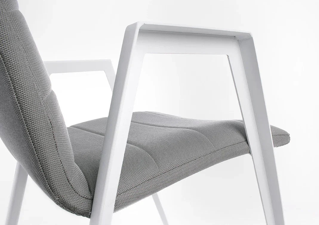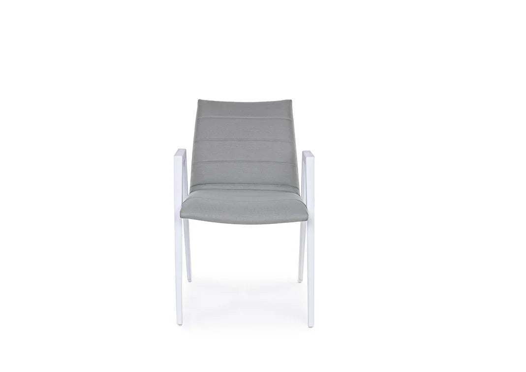 Bizzotto Gartenstuhl-Set Axor (2 Stück). Ein Garten-Stuhl in modernem Design. Das Gestell ist aus Aluminiumgestell (Guss), (Polyester) pulverbeschichtet. Outdoor-Polsterung: Quick Dry Foam (feuchtigkeitsabweisend). Bezug in Sunbrella Textilene (Logan 470 g/m²).