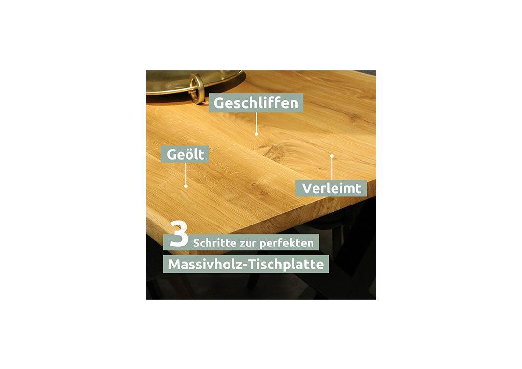 Unsere Tischplatten werden fertig geschliffen und geölt bei Ihnen angeliefert. Montieren Sie einfach ein Tischgestell Ihrer Wahl und stellen Sie den Tisch auf.