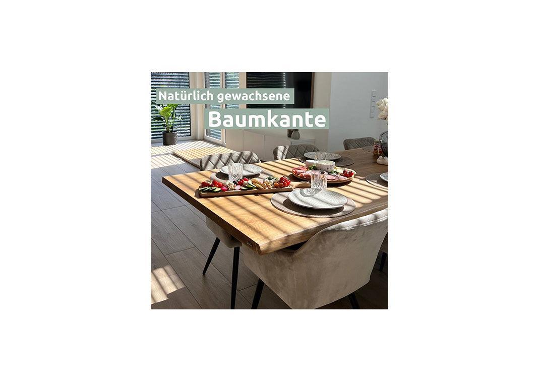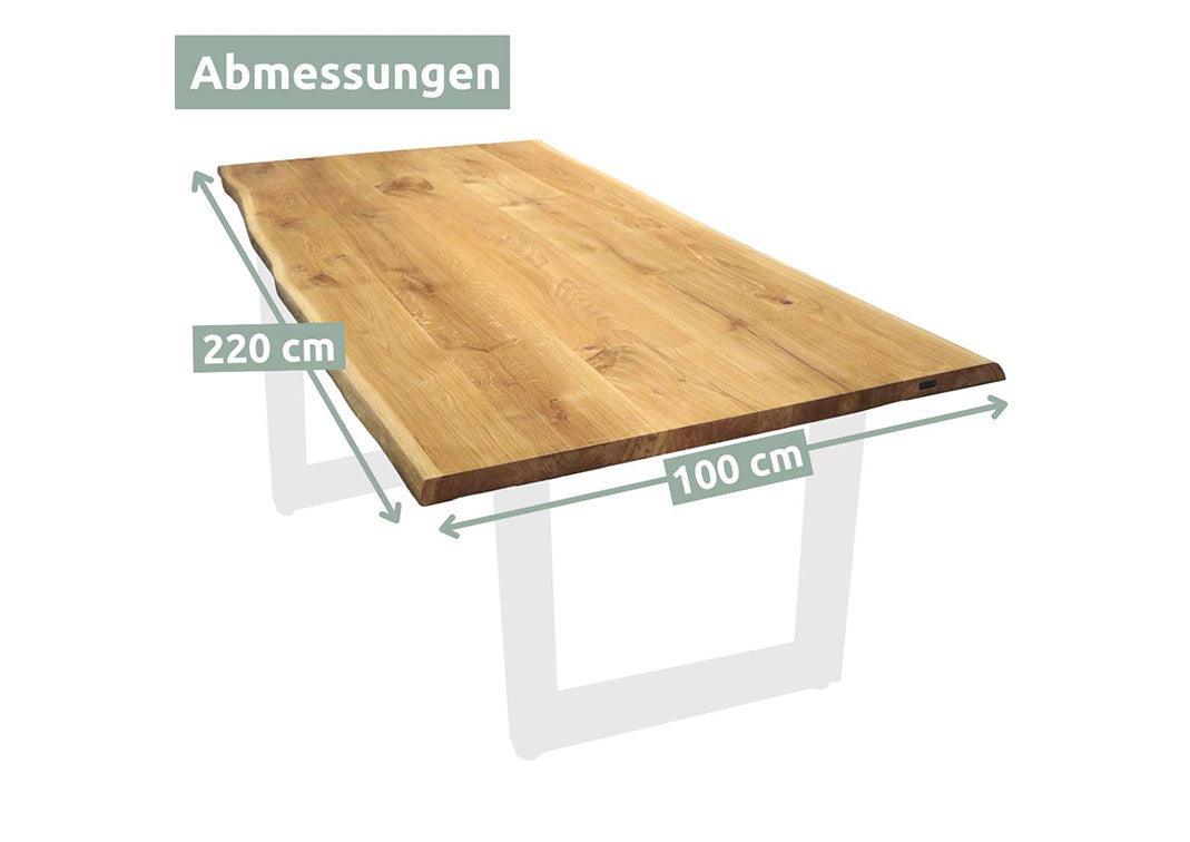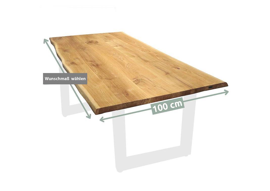 H4H Tischplatte 200 x 100cm mit Baumkante aus massiver Eiche