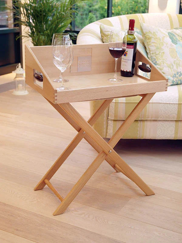Untergestell aus massiver Buche, klappbar, Verwandelt Uschi - das Original zum Beistelltisch. Einfach gutaufgestellt.