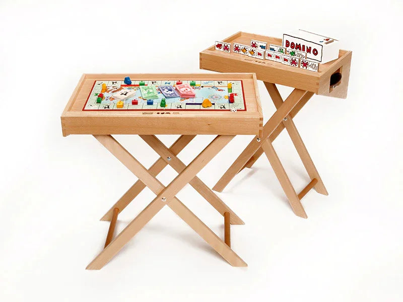 Der Clou! "gutaufgestellt" macht das Tablett Uschi zur Verwandlungskünstlerin. Im Handumdrehen vom Tablett zum Beistelltisch, Spieltisch oder Schreibtisch.