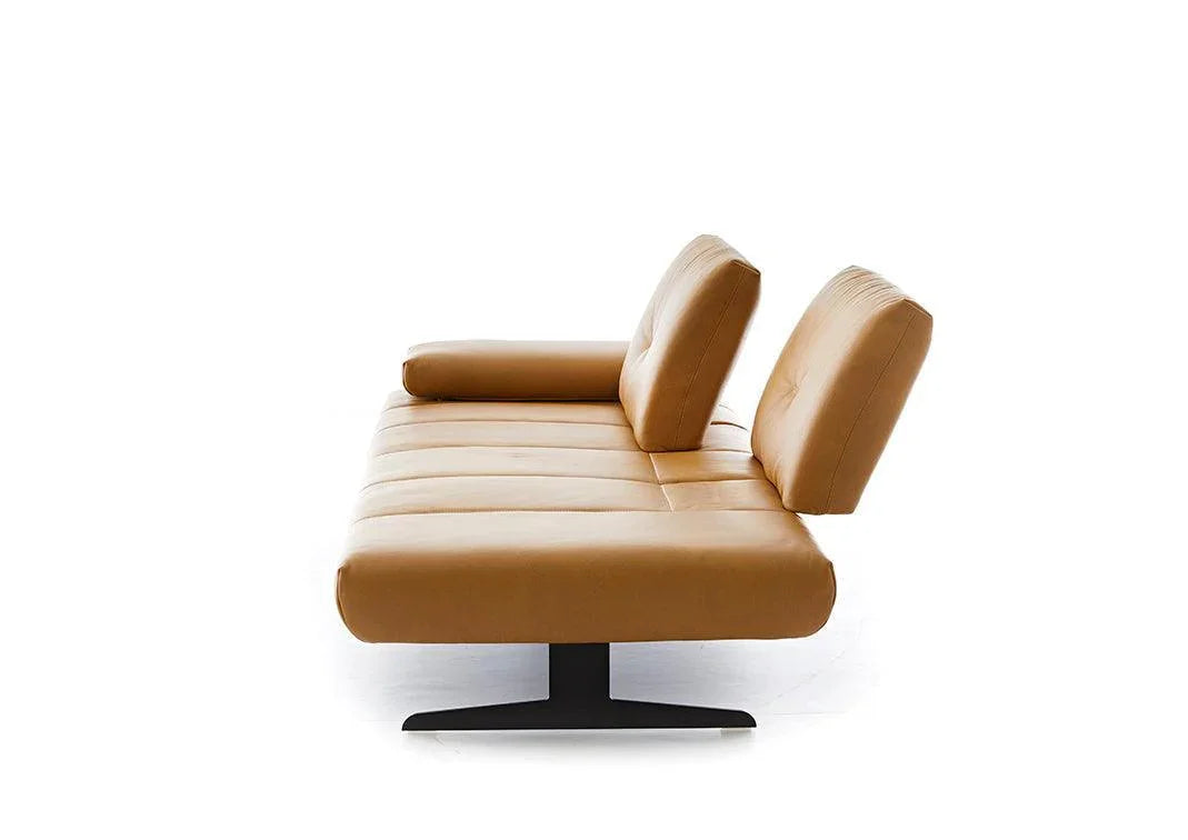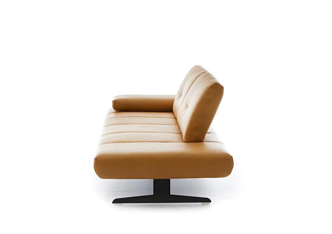 großzügige Sitztiefe nach hinten versetzen, das Seitenteil ist verstellbar. Die akzentuierenden Nähte als Perlkappnaht in Leder. Die elegante Metallkufe rundet das Erscheinungsbild ab.