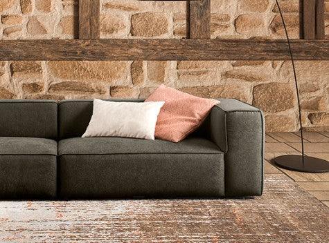 Das Dekokissen around the block ohne Steppung wird passend für das Modell angefertigt und kann in allen Stoff und Leder-Bezügen bestellt werden.
