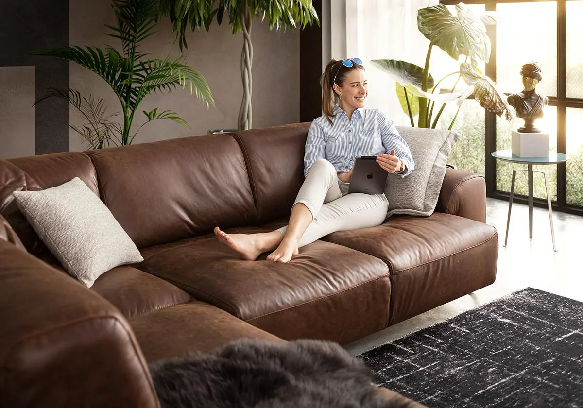 Wählen Sie zwischen edlem anschmiegsamen Leder oder weichem kuscheligen Stoff in verschiedenen Farben und Ausführungen. So lässt sich alessiio perfekt in Ihr Zuhause integrieren – egal ob modern, klassisch oder minimalistisch. Die hochwertigen Materialien stehen für Stil, Langlebigkeit und ein besonderes Wohngefühl.