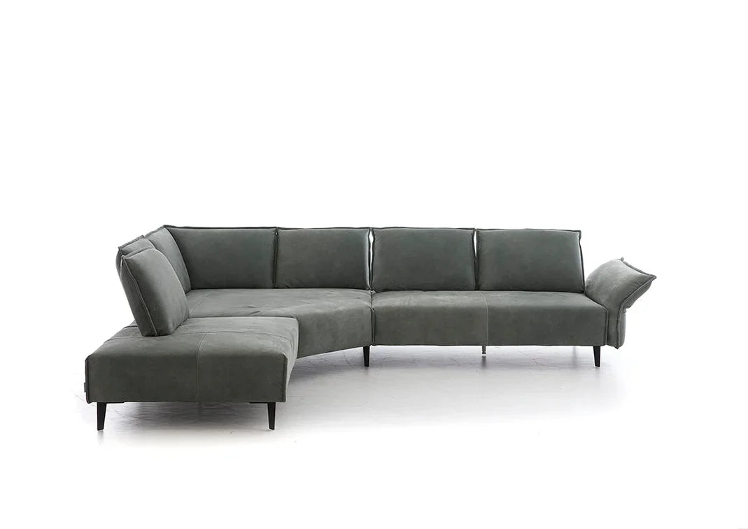 Die Polsterung dieses Modells ist besonders leger verarbeitet, um ein bestimmtes optisches Erscheinungsbild zu erzeugen. Die hier angewandte besonders legere