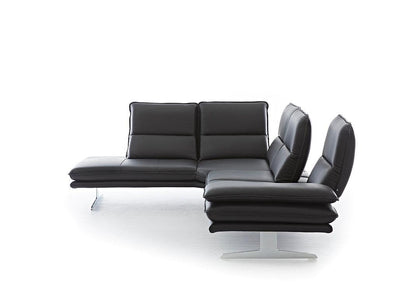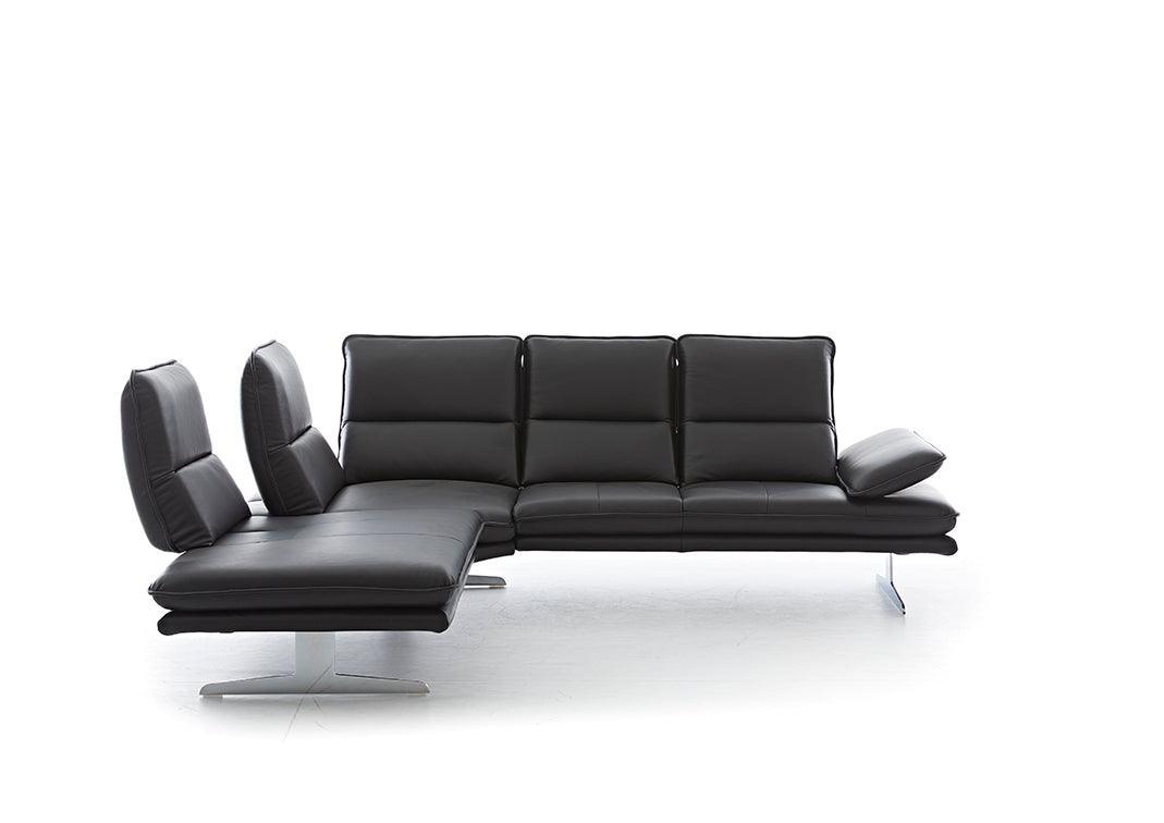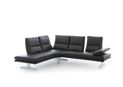Tauchen Sie ein in die Welt des modernen Designs und entdecken Sie, wie unser Ecksofa nicht nur Ihren Raum, sondern auch Ihr Leben bereichert. Gönnen Sie sich das Vergnügen von erstklassigem Wohnkomfort und holen Sie sich mit unserem Ecksofa ein Stück zeitlose Eleganz in Ihr Zuhause. Klare Formen sowie die luftig-leichte Kufe sorgen für viel Bodenfreiheit in stilvollen Räumen. Die funktionale Sitztiefenverstellung wird optional durch flexible Kopfstützen und Seitenteile ergänzt.