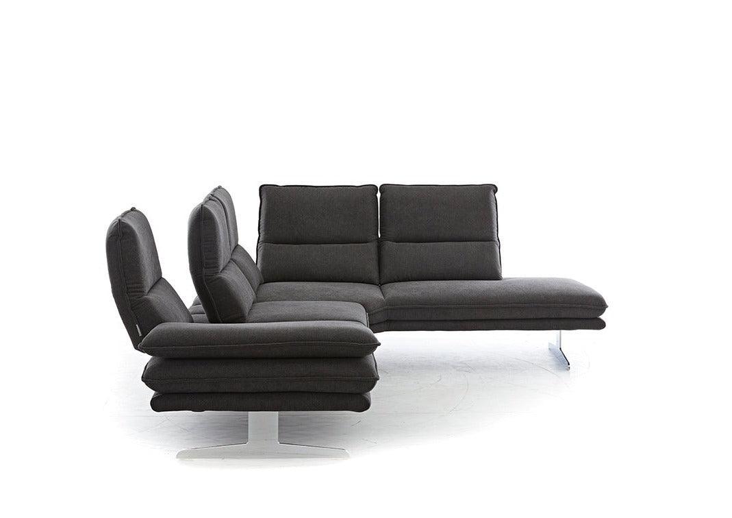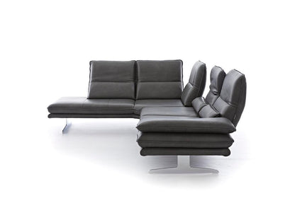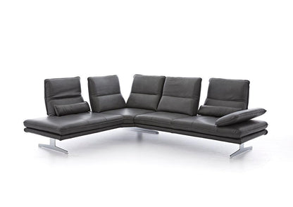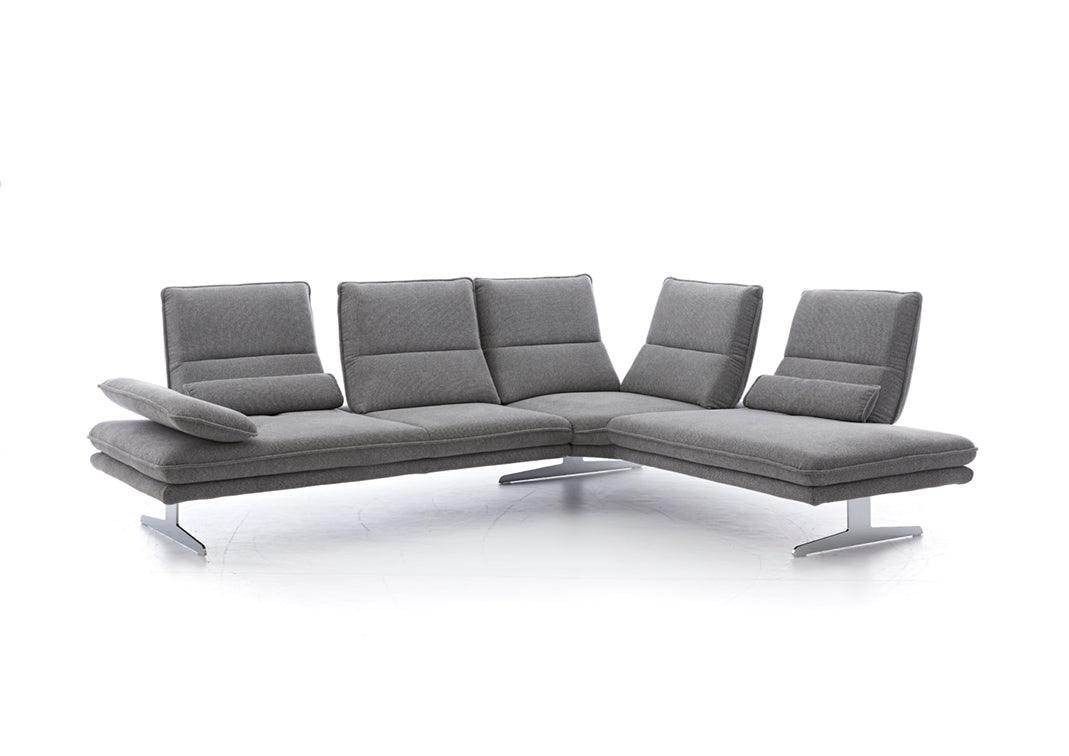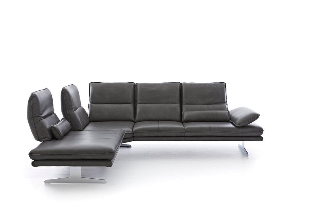 Tauchen Sie ein in die Welt des modernen Designs und entdecken Sie, wie unser Ecksofa nicht nur Ihren Raum, sondern auch Ihr Leben bereichert. Gönnen Sie sich das Vergnügen von erstklassigem Wohnkomfort und holen Sie sich mit unserem Ecksofa ein Stück zeitlose Eleganz in Ihr Zuhause. Klare Formen sowie die luftig-leichte Kufe sorgen für viel Bodenfreiheit in stilvollen Räumen. Die funktionale Sitztiefenverstellung wird optional durch flexible Kopfstützen und Seitenteile ergänzt.