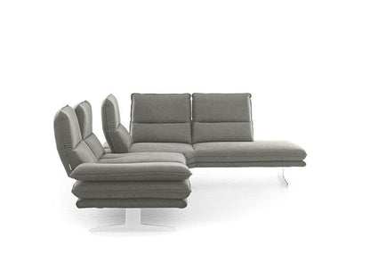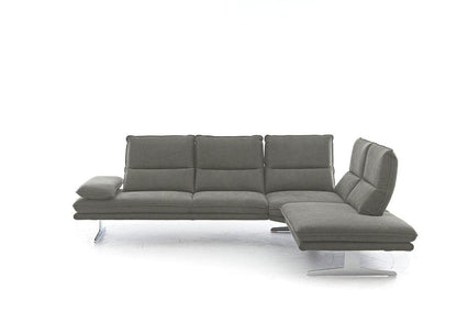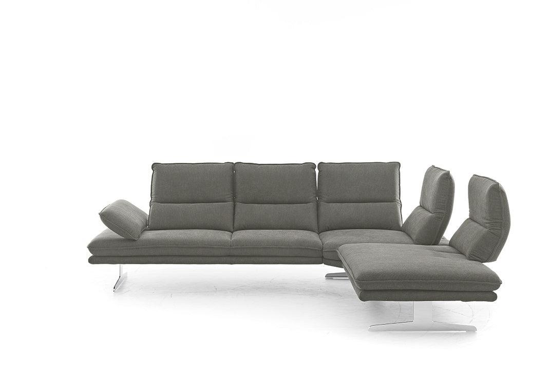 Tauchen Sie ein in die Welt des modernen Designs und entdecken Sie, wie unser Ecksofa nicht nur Ihren Raum, sondern auch Ihr Leben bereichert. Gönnen Sie sich das Vergnügen von erstklassigem Wohnkomfort und holen Sie sich mit unserem Ecksofa ein Stück zeitlose Eleganz in Ihr Zuhause. Klare Formen sowie die luftig-leichte Kufe sorgen für viel Bodenfreiheit in stilvollen Räumen. Die funktionale Sitztiefenverstellung wird optional durch flexible Kopfstützen und Seitenteile ergänzt.