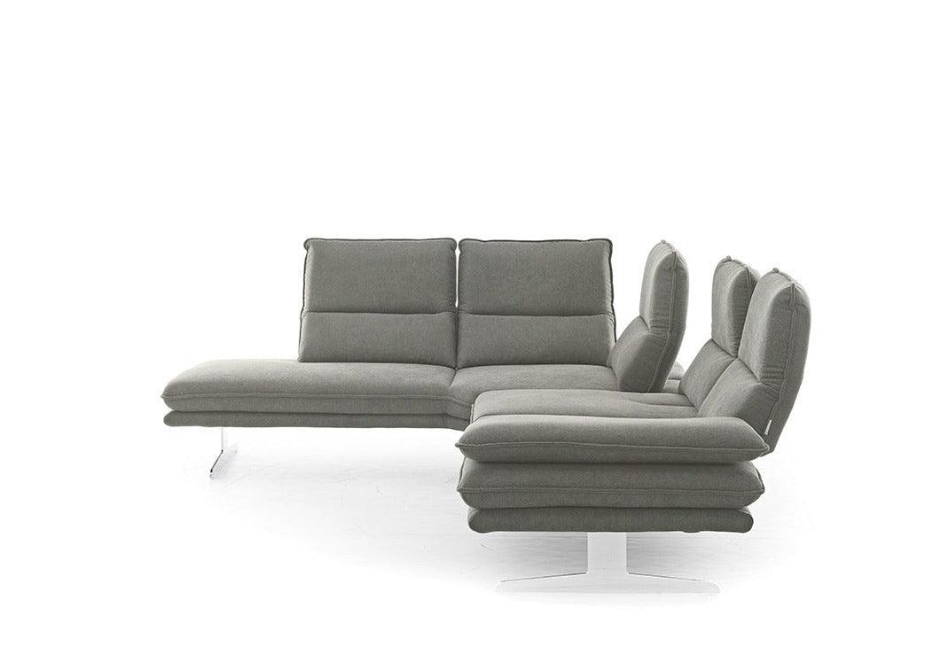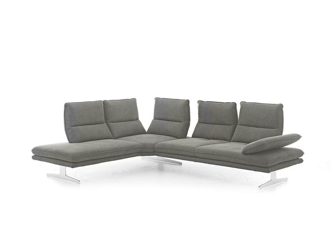 Tauchen Sie ein in die Welt des modernen Designs und entdecken Sie, wie unser Ecksofa nicht nur Ihren Raum, sondern auch Ihr Leben bereichert. Gönnen Sie sich das Vergnügen von erstklassigem Wohnkomfort und holen Sie sich mit unserem Ecksofa ein Stück zeitlose Eleganz in Ihr Zuhause. Klare Formen sowie die luftig-leichte Kufe sorgen für viel Bodenfreiheit in stilvollen Räumen. Die funktionale Sitztiefenverstellung wird optional durch flexible Kopfstützen und Seitenteile ergänzt.