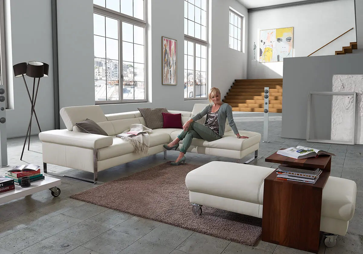 Zeitlos, bequem, vielseitig – das Ecksofa Modell Finn von W.SCHILLIG steht für modernen Wohnkomfort mit klarer Linienführung. Die legere Polsterung, eine großzügige Sitzfläche und wahlweise mit motorischer Relaxfunktion machen Finn zu einem echten Wohlfühlmöbel. Die schlanken Kufen sorgen für eine leichte, elegante Anmutung im Raum. Wählbar in vielen Leder oder Stoffen.