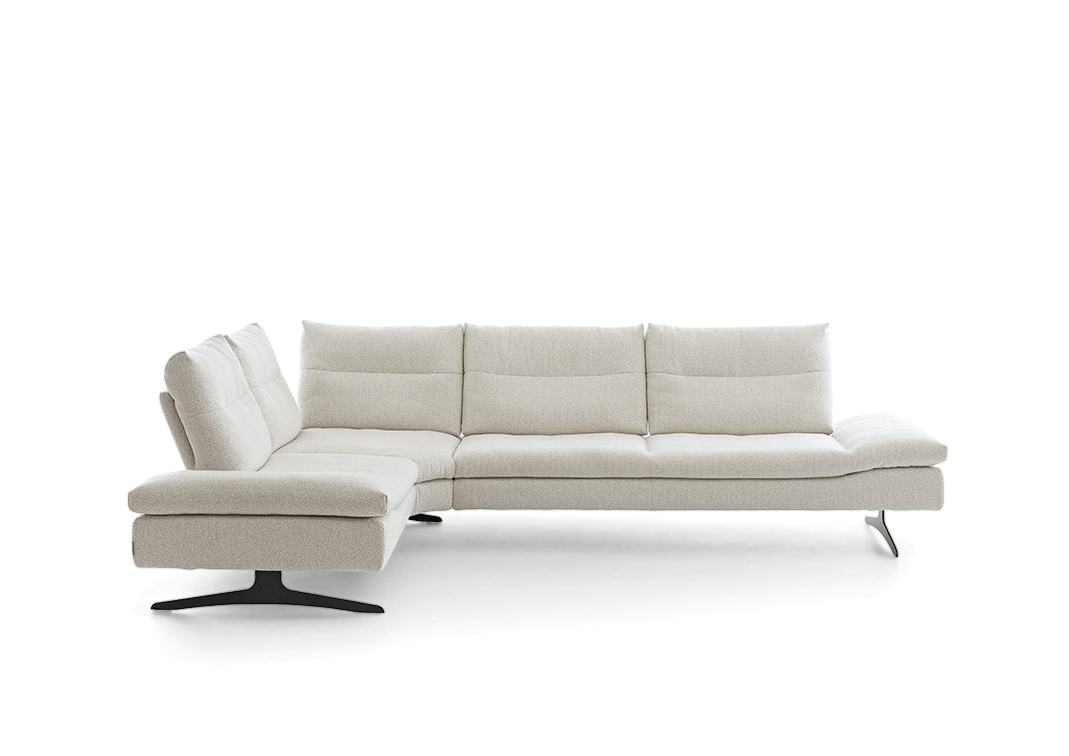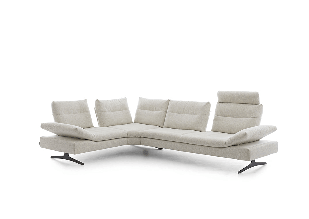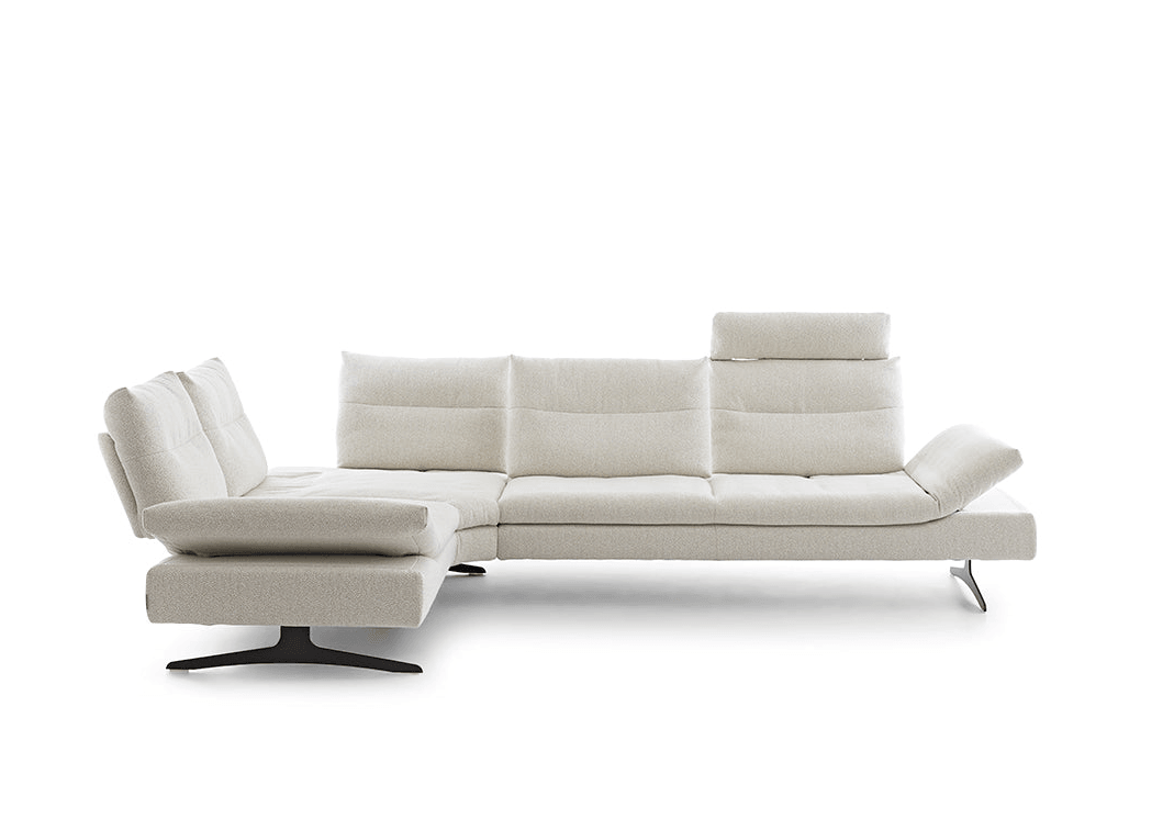 Ein Meisterwerk der Anpassungsfähigkeit: seventy5 überzeugt mit verstellbarer Sitztiefe und flexiblen Seitenteilen, die sich mühelos Ihren Bedürfnissen anpassen. Auf eleganten Metallkufen schwebend, vereint dieses Sofa kraftvolle Präsenz mit scheinbarer Leichtigkeit – ein Statement-Stück, das weit mehr als nur ein Möbel ist.