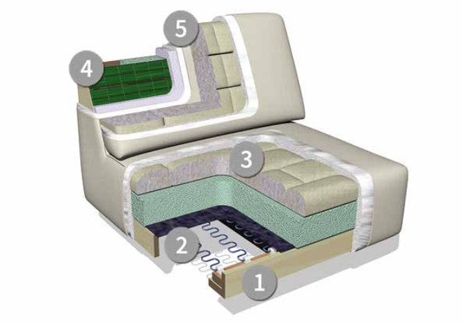 3. Polsteraufbau Sitz aus ergo-PUR-Schaum und hochwertigem Gemisch aus Polyesterfasern und Schaumstoffstäbchen