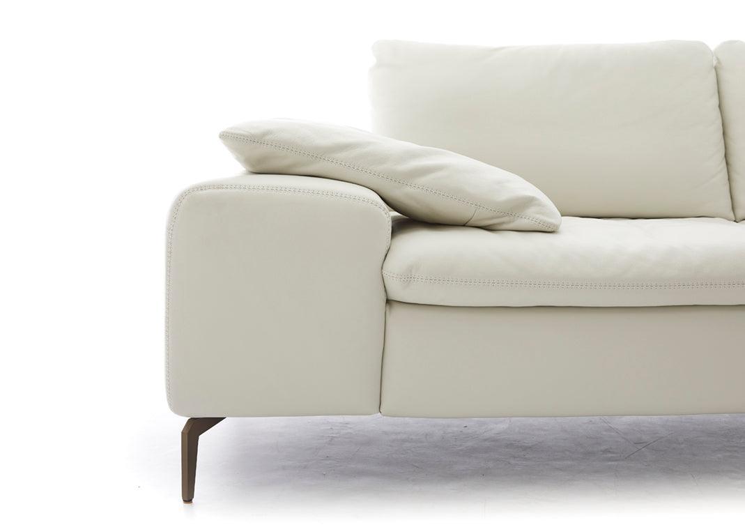 Unser hochwertiges Ecksofa valentinoo in Leder Cream White mit Seitenteilkissen und Metallfüßen in Bronze ist eine perfekte Wahl für jeden, der nach einem stilvollen und bequemen Möbelstück sucht. Das Sofa ist aus qualitativ hochwertigem Leder gefertigt, das nicht nur langlebig ist, sondern auch ein elegantes und zeitloses Aussehen hat.