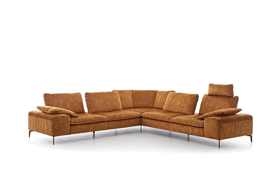 Das hochwertige Ecksofa valentinoo in Stoff mit Metallfüßen in Bronze ist eine perfekte Wahl für jeden, der nach einem stilvollen und bequemen Möbelstück sucht. Das Sofa ist aus qualitativ hochwertigem Stoff gefertigt, das nicht nur langlebig ist, sondern auch ein elegantes und zeitloses Aussehen hat.