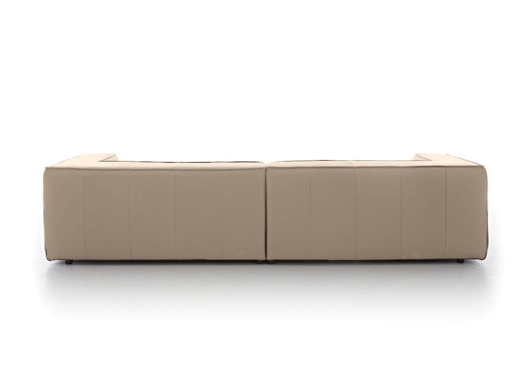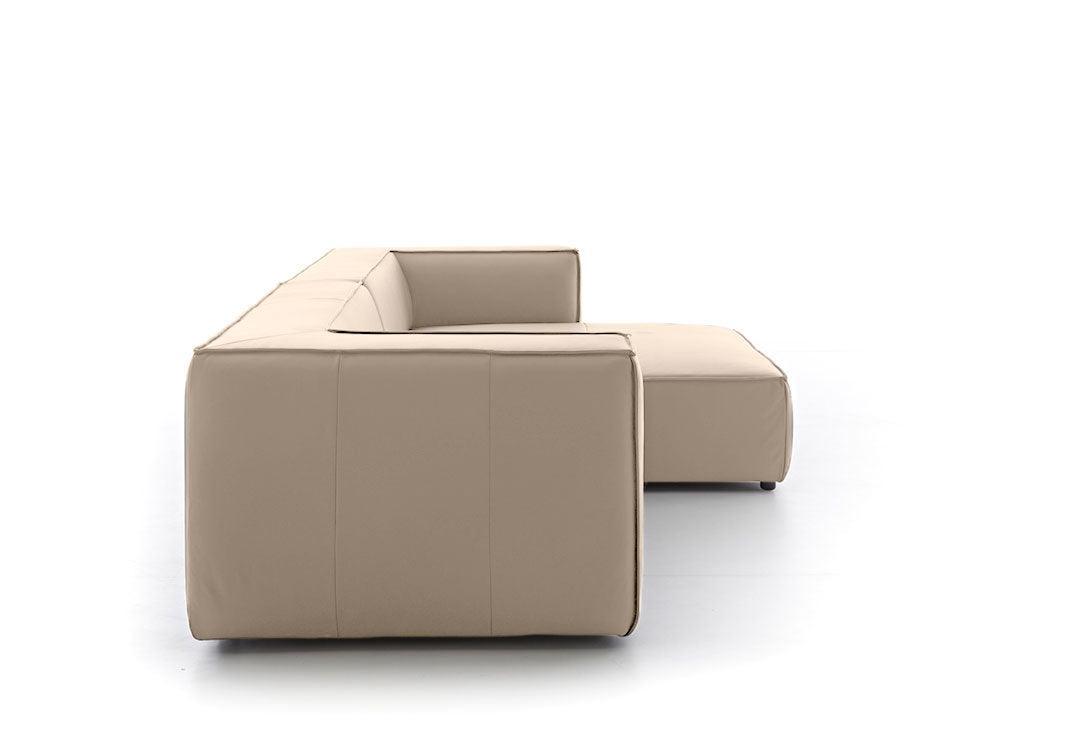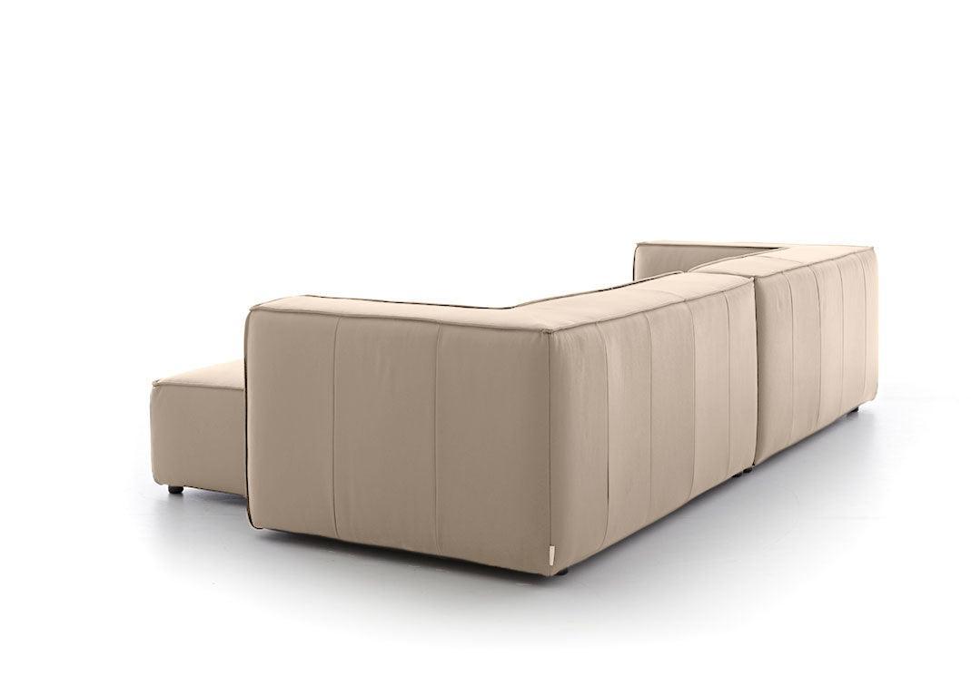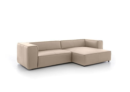 Rund ums Karree möchte man meinen. Hier wird Geradlinigkeit ganz groß geschrieben und diese spezielle Formgebung wird zusätzlich durch eine elegante Biese unterstützt. Der Longchair ist außerordentlich einladend und klassisch modern.