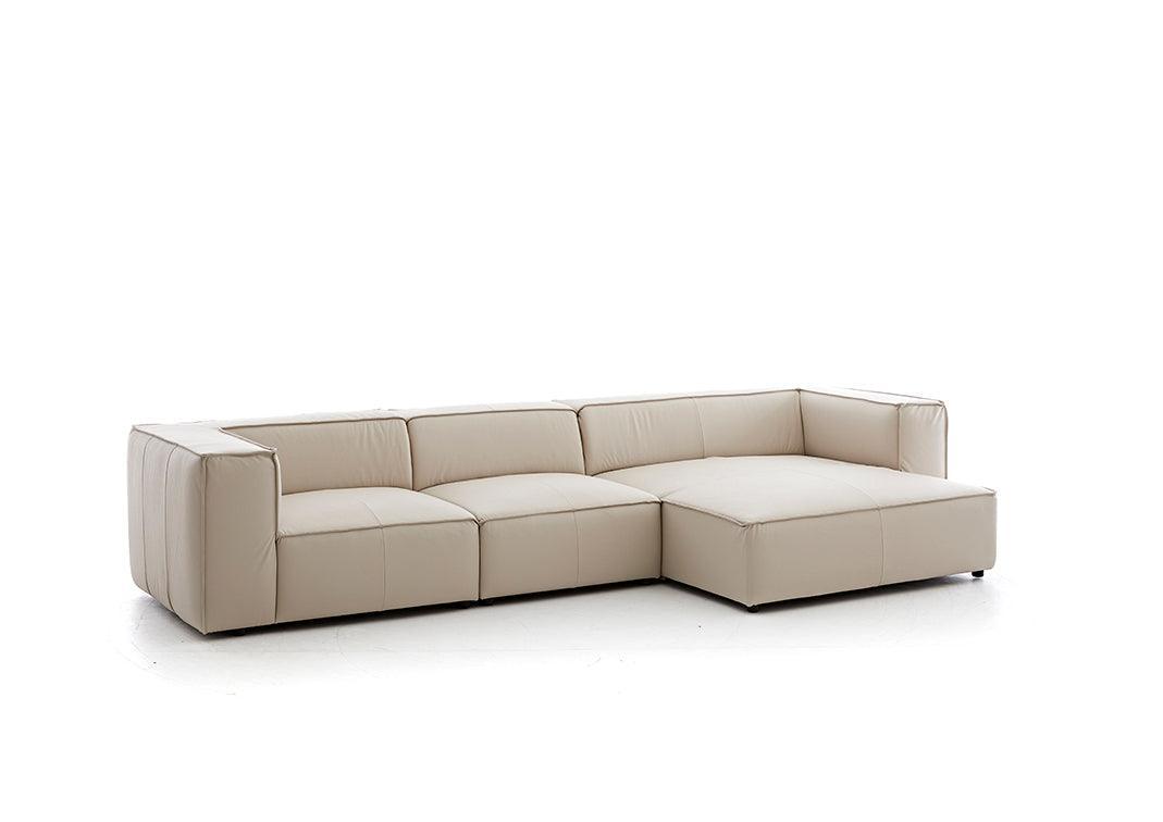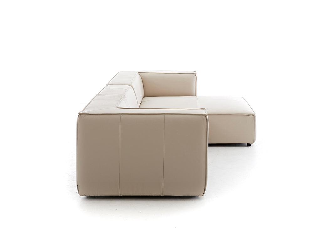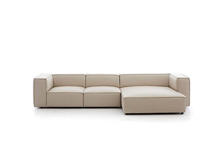 Rund ums Karree möchte man meinen. Hier wird Geradlinigkeit ganz groß geschrieben und diese spezielle Formgebung wird zusätzlich durch eine elegante Biese unterstützt. Der Longchair ist außerordentlich einladend und klassisch modern.