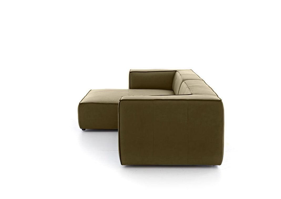 Rund ums Karree. Hier wird Geradlinigkeit ganz groß geschrieben und diese spezielle Formgebung wird zusätzlich durch eine elegante Biese unterstützt. Der Longchair ist einladend und in einem modernen Ambiente zuhause.