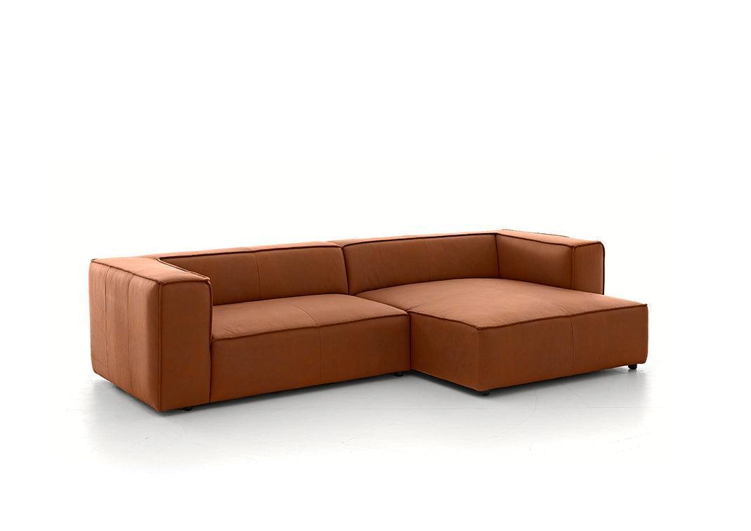 Rund ums Karree. Hier wird Geradlinigkeit ganz groß geschrieben und diese spezielle Formgebung wird zusätzlich durch eine elegante Biese unterstützt. Der Longchair ist einladend und in einem modernen Ambiente zuhause.