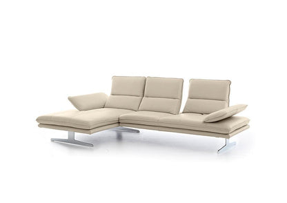 Bodenfreiheit in stilvollen Räumen. Die funktionale Sitztiefenverstellung wird durch flexible Kopfstützen und Seitenteile ergänzt. Die elegante Biese macht dieses Designer Sofa zum perfekten Wohntraum.