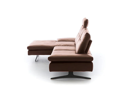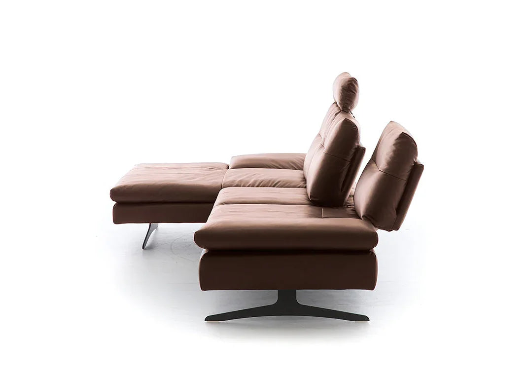 Ein Meisterwerk der Anpassungsfähigkeit: seventy5 überzeugt mit verstellbarer Sitztiefe und flexiblen Seitenteilen, die sich mühelos Ihren Bedürfnissen anpassen. Auf eleganten Metallkufen schwebend, vereint dieses Sofa kraftvolle Präsenz mit scheinbarer Leichtigkeit – ein Statement-Stück, das weit mehr als nur ein Möbel ist.