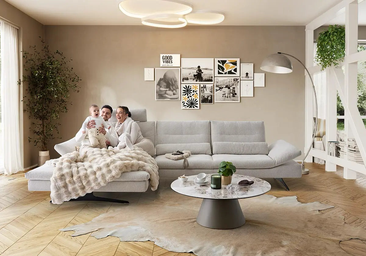 Elegant, flexibel, charakterstark – das Modell seventy5 von W.SCHILLIG verbindet lässigen Komfort mit durchdachter Funktionalität. Mit verstellbarer Sitztiefe, flexiblen Seitenteilen und schwebender Optik auf eleganten Metallkufen wird dieses Sofa zum stilvollen Mittelpunkt jedes Wohnraums. Wahlweise in Leder oder Stoff erhältlich.