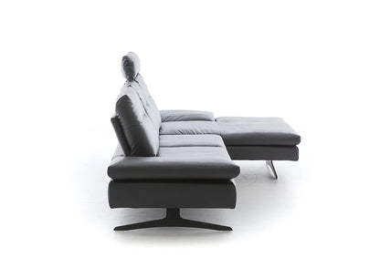 Ein Meisterwerk der Anpassungsfähigkeit: seventy5 überzeugt mit verstellbarer Sitztiefe und flexiblen Seitenteilen, die sich mühelos Ihren Bedürfnissen anpassen. Auf eleganten Metallkufen schwebend, vereint dieses Sofa kraftvolle Präsenz mit scheinbarer Leichtigkeit – ein Statement-Stück, das weit mehr als nur ein Möbel ist.