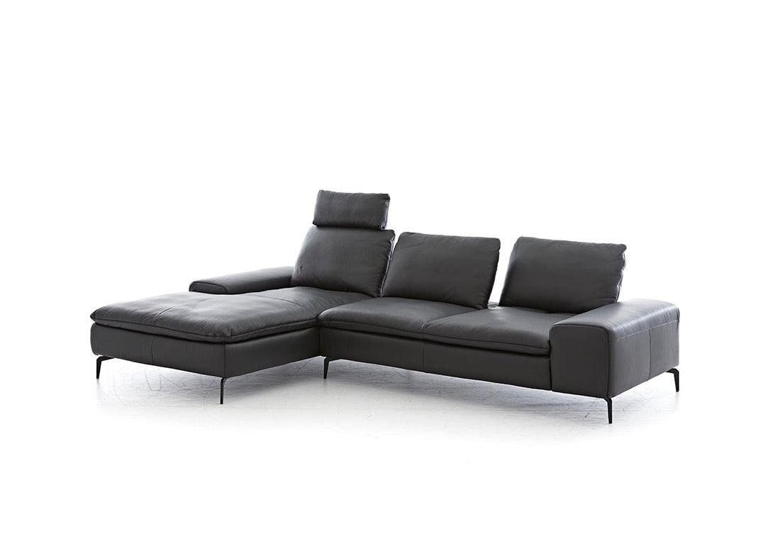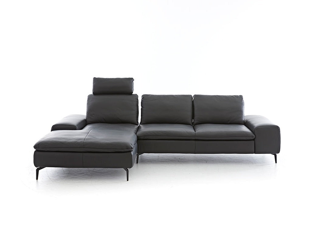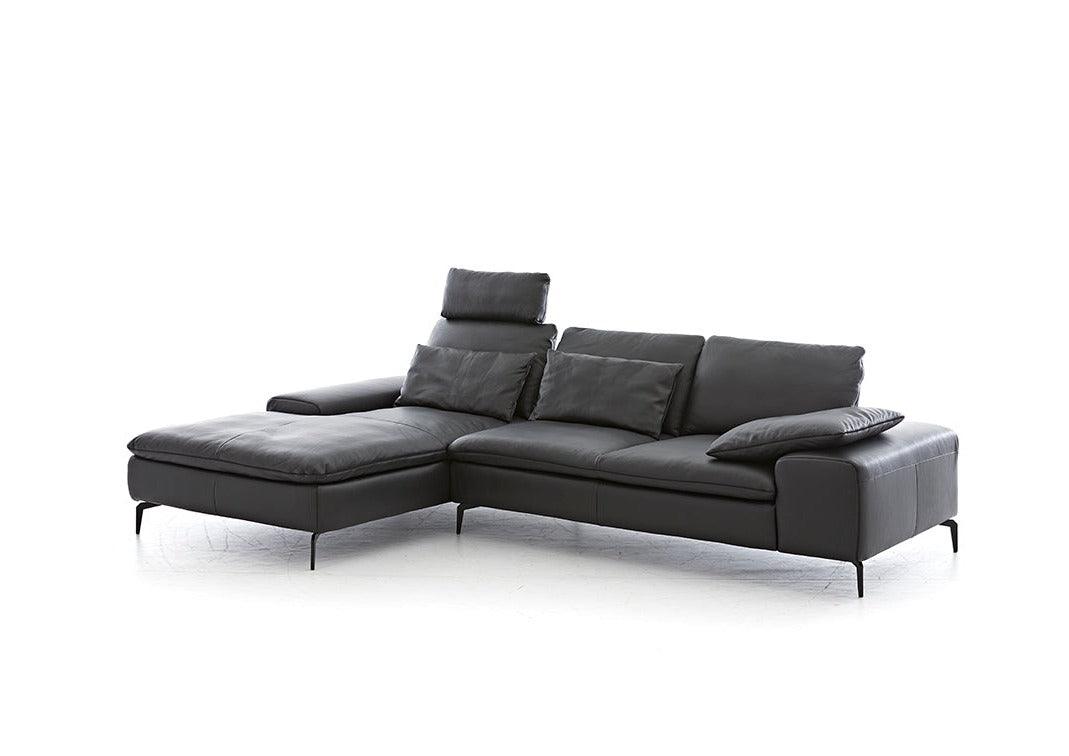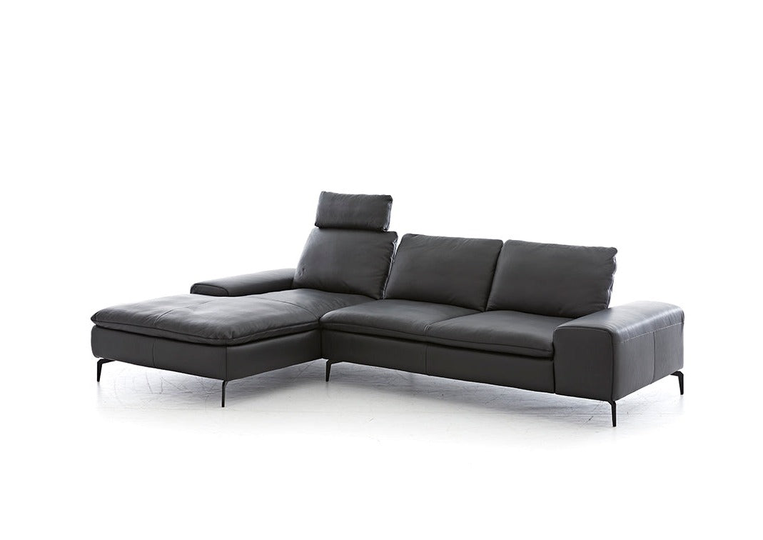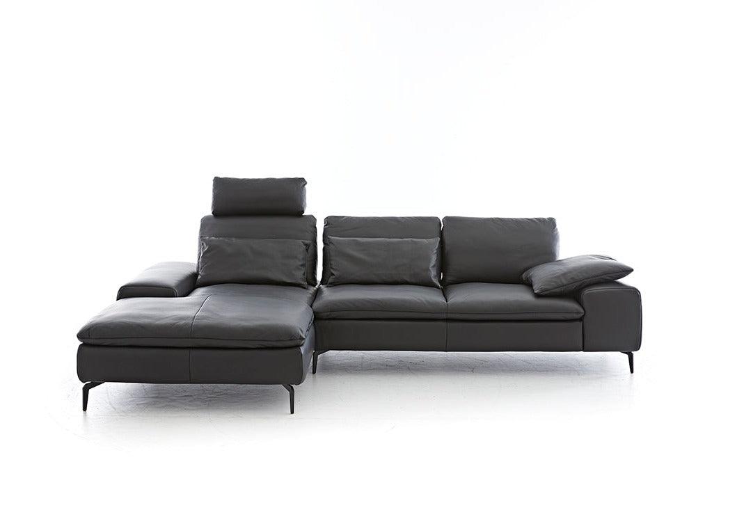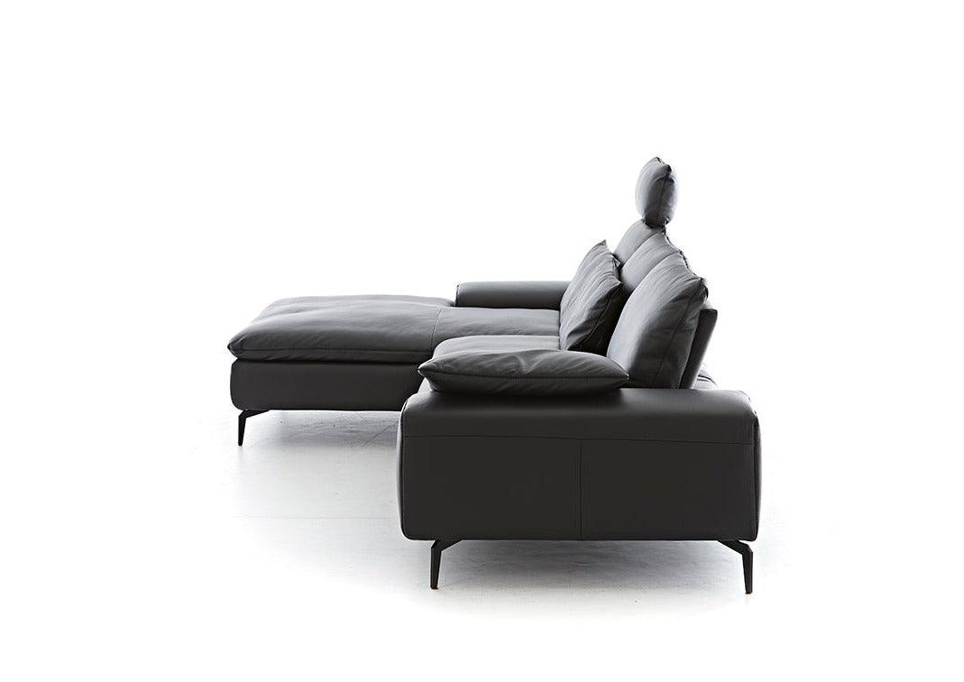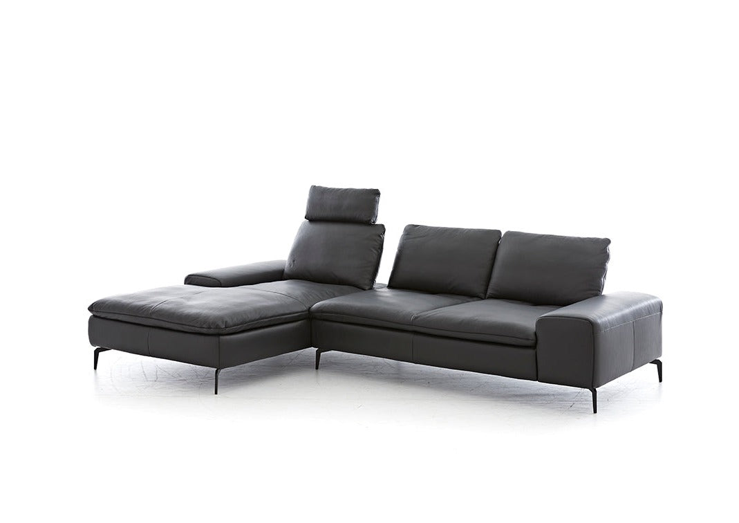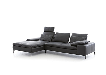 Modern und funktional. Die elegante Sitztiefenverstellung ist bei diesem Modell inklusive. Die verschiedenen Kissen können einladend und sinnvoll platziert werden. Der gewinkelte Metallfuß kann auch auf Anfrage in bronze oder chrom matt und glänzend bestellt werden.