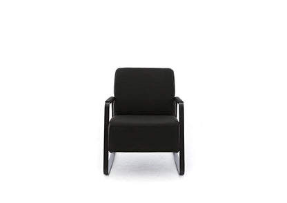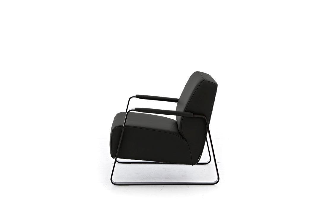 Eleganter Sessel, der Platz spart. Optisches Highlight bei diesem Sessel bildet das Seitenteilgestell.
