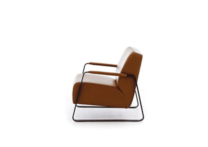 Eleganter Sessel, der Platz spart. Optisches Highlight bei diesem Sessel bildet das Seitenteilgestell.