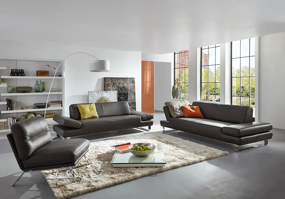 Das Modell taboo von W.SCHILLIG überzeugt durch seine klare Linienführung und bewusst legere Polsterung. Die breiten Armlehnen lassen sich dank Rasterfunktion individuell verstellen, ideal für entspanntes Zurücklehnen. In Kombination mit edlem Leder oder hochwertigem Stoff entsteht ein Sofa, das Komfort und zeitloses Design gekonnt vereint.