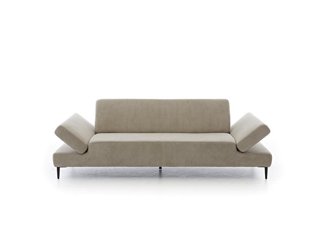 Mehr als nur ein Möbelstück. Das Sofa taboo schafft Raum für Ruhe, Entspannung und stilvolle Wohnlichkeit. Die verstellbaren Armlehnen mit Rasterfunktion bieten flexible Unterstützung, ob als bequeme Kopfablage oder zum Zurücklehnen beim Lesen und Entspannen. Die legere Polsterung sorgt für ein besonders weiches Sitzgefühl und unterstreicht den einladenden Charakter des Designs. Mit seiner klaren Formensprache fügt sich taboo harmonisch in moderne Wohnräume ein und wird zum dezenten Mittelpunkt jeder Einrichtung.